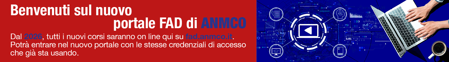 Questa piattaforma è il punto di accesso centralizzato per tuttI i corsi FAD ANMCO. Il portale è fruibile sia da desktop sia da dispositivi mobili; l’accesso è consentito agli utenti in possesso delle credenziali ANMCO per i servizi digitali. Chi ne fosse privo può ottenere le credenziali registrandosi qui. La registrazione ai servizi digitali ANMCO è aperta a tutti e non implica iscrizione automatica alla Società Scientifica..